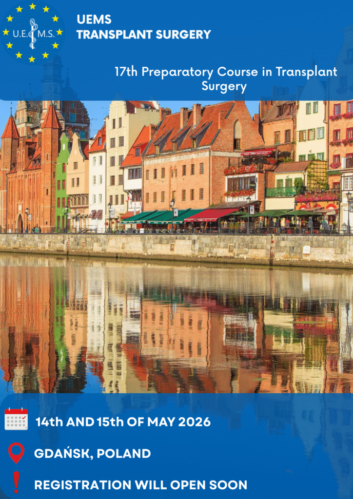 The Preparatory Course organised by the UEMS Division of Transplant Surgery covers all the topics of the EBSQ Examination in Transplant Surgery: